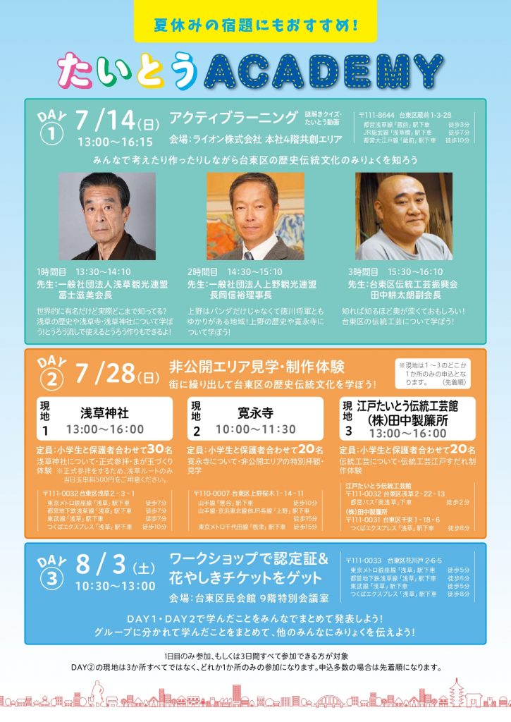 7月14日、7月28日、8月3日の3日間!未来のグローバル人材育成!!台東区の魅力を学んで発表しよう!「たいとうACADEMY」3days開催されます。