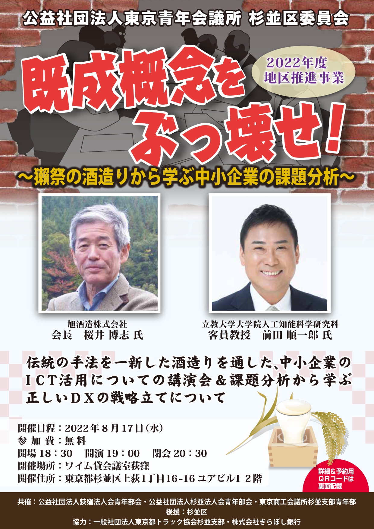 | 共催団体 | 東京商⼯会議所 杉並⽀部 ⻘年部 公益社団法⼈ 杉並法⼈会 ⻘年部会 公益社団法⼈ 荻窪法⼈会 ⻘年部会 |