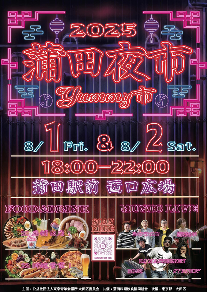 蒲田に夜市がやってくる!!【蒲田夜市~YUMMY市~】開催!!2025年8月1日(金)・2日(土) 18時〜22時