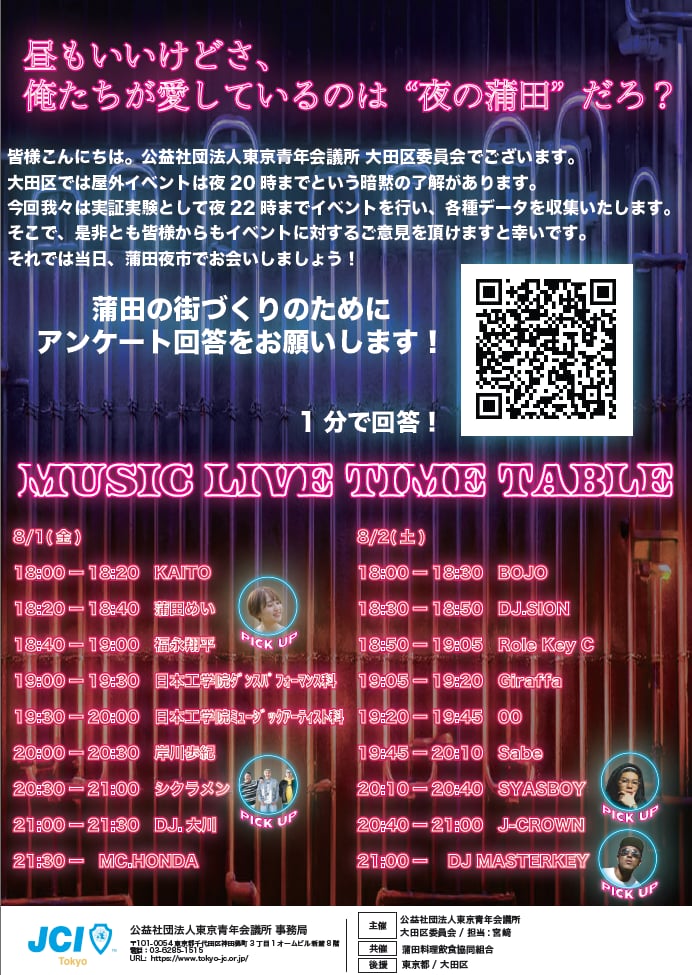| 主催/共催 | 公益社団法人東京青年会議所 大田区委員会 蒲田料理飲食協同組合 |