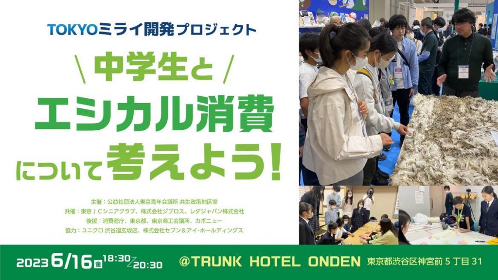 公益社団法人東京青年会議所は、2023年6月16(日)TRUNK HOTEL ONDEN(東京都渋⾕区神宮前5-31)にて、【中学生と#エシカル消費 について考えよう!~TOKYOミライ開発PJ~】を開催いたしました。