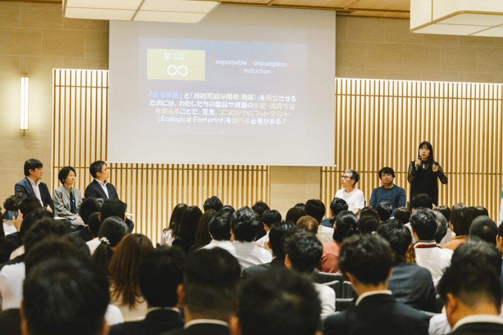 講師を務めている佐々木梨絵氏より、エシカル消費に関連する基礎知識について話して頂き、来場者の例会への理解度を高めました。その後、実際に企業・行政でエシカルな経済活動に向け実践している方々より取組み、要求を話してもらうことで、エシカル消費に取り組む姿勢を来場者に伝えました。