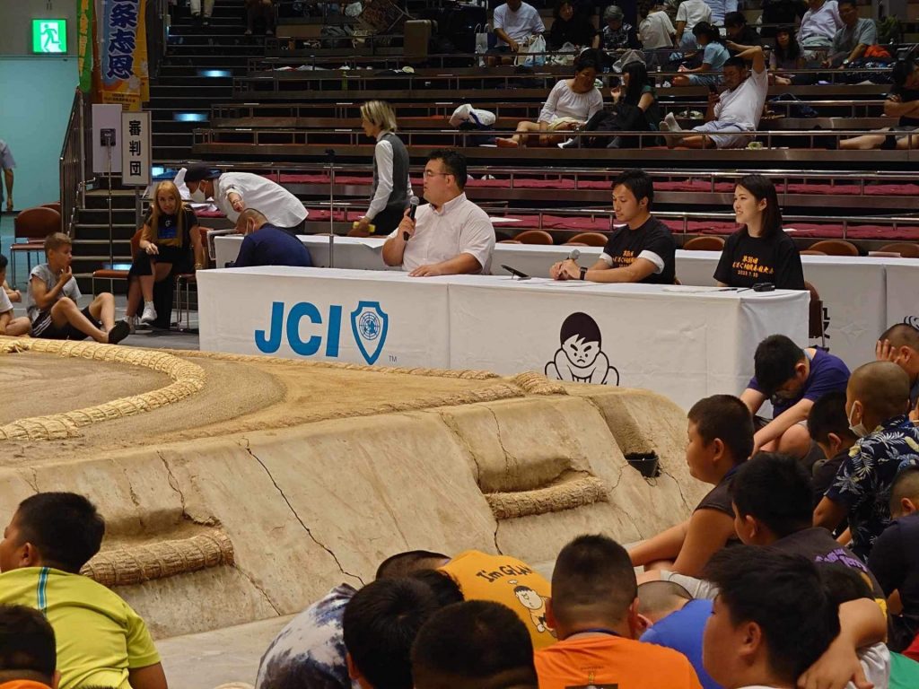 前日の講話に元琴奨菊・秀ノ山親方、次世代を担うリーダーとなるこどもたちの輝く未来に前進に繋がるよう、ご自身の経験を講話いただきました。大会を前日に控えた選手たちにとって大相撲優勝経験のある秀ノ山親方から、わんぱく相撲出場経験や日々の練習を重ねる努力の大切さ、夢に向かって挑戦する強い気持ちを学ぶことができた。また質疑応答の時間を長く取ることで、子どもたちの積極的な参加を促すことができました。