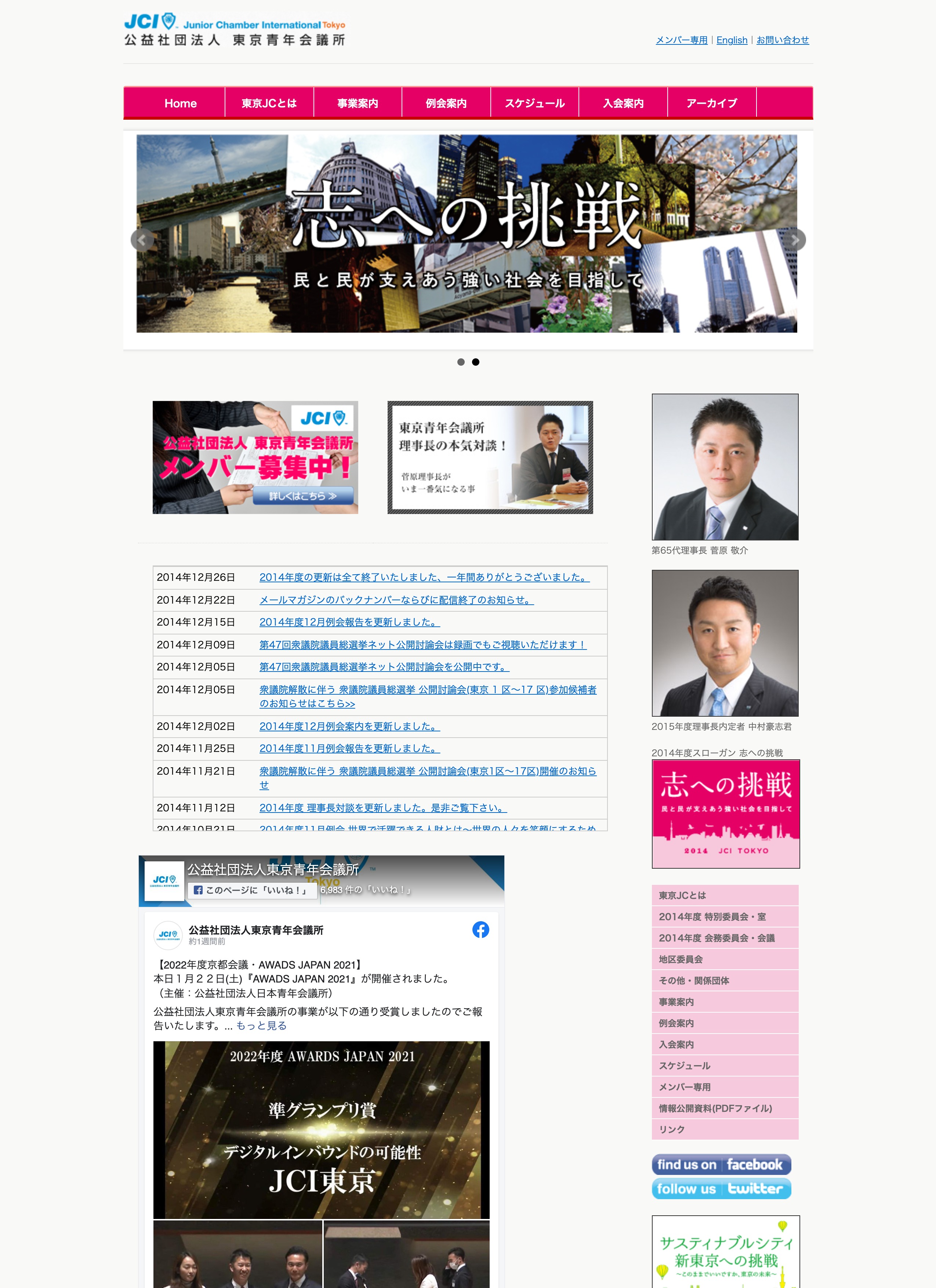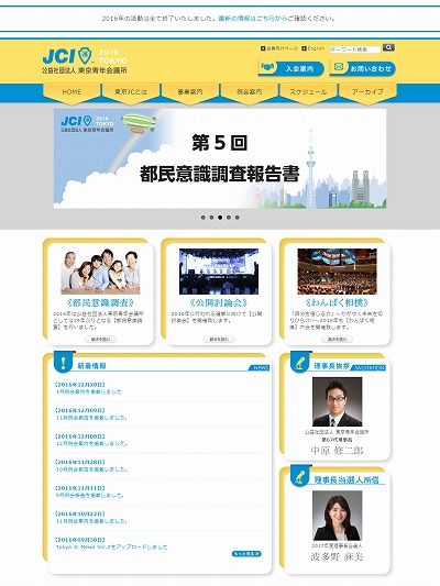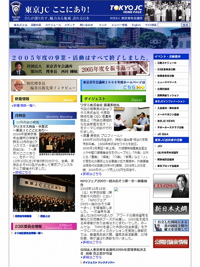 過去サイトデザイン TOP /過去サイトデザイ... 東京青年会議所 過去サイトデザイン 2024年〜2001年 東京青年会議所の過去サイトデザイン遍歴をご覧いただけます。 2024年 2023年 2022年 2021年 2020年 2019年 2018年 2017年 2016年 2015年 2014年 2013年 2012年 2011年 2010年 2009年 2008年 2007年 2006年 2005年 2004年 2003年 2002年 2001年